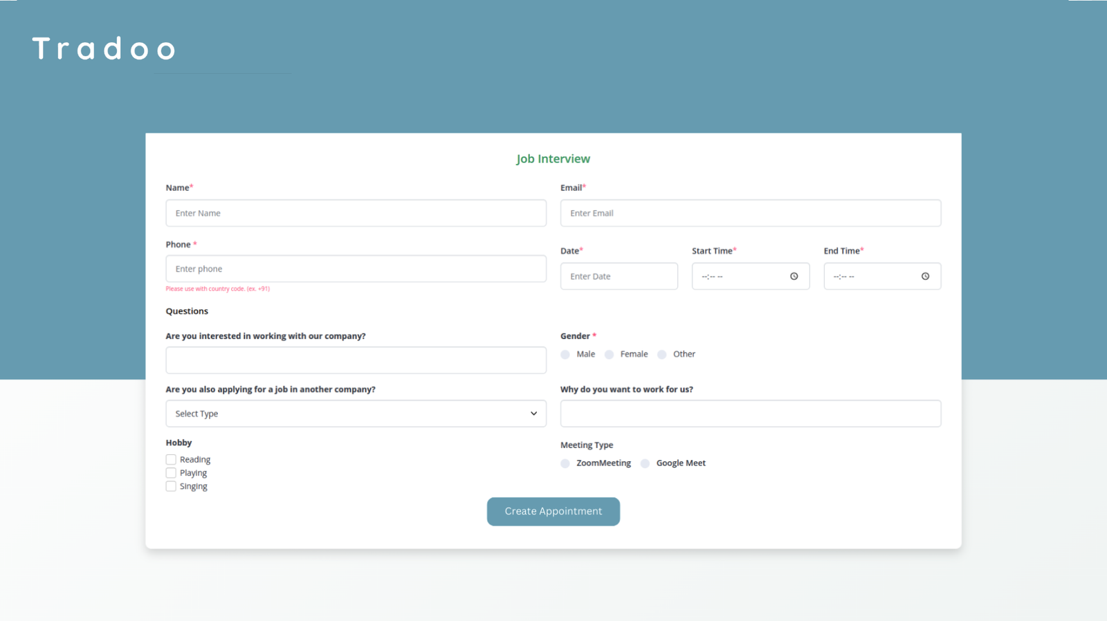 The appointment feature lets you gather extra details from individuals when they schedule appointments. This information helps you deliver a personalized and seamless experience, ensuring every interaction is smooth, efficient, and tailored to their specific needs.