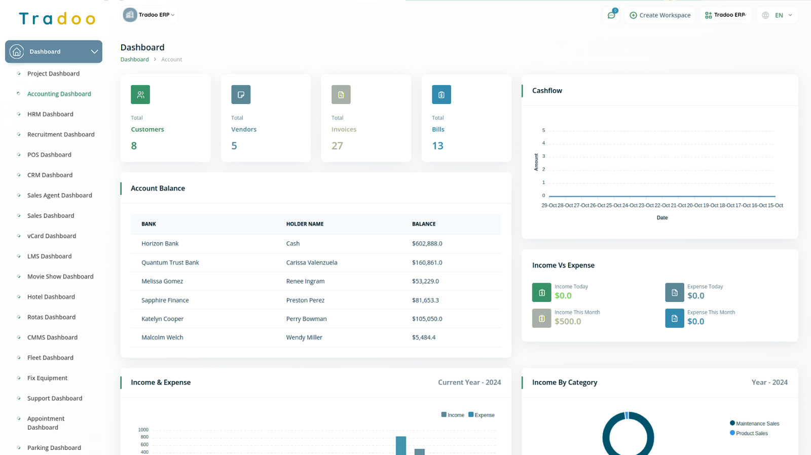 Manage all your business functions seamlessly from a single platform with Tradoo ERP.