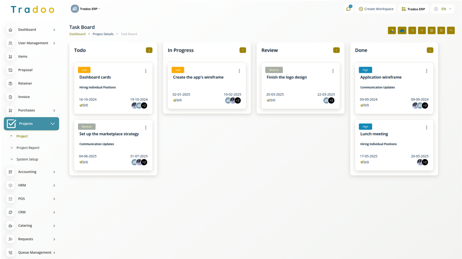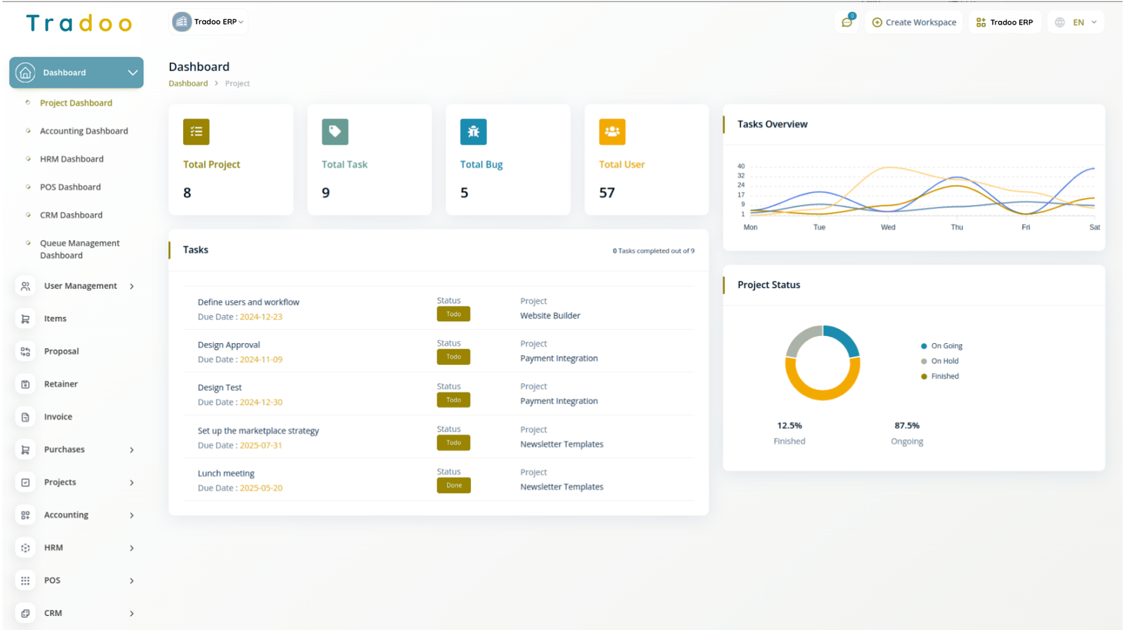Manage all your business functions seamlessly from a single platform with Tradoo ERP.