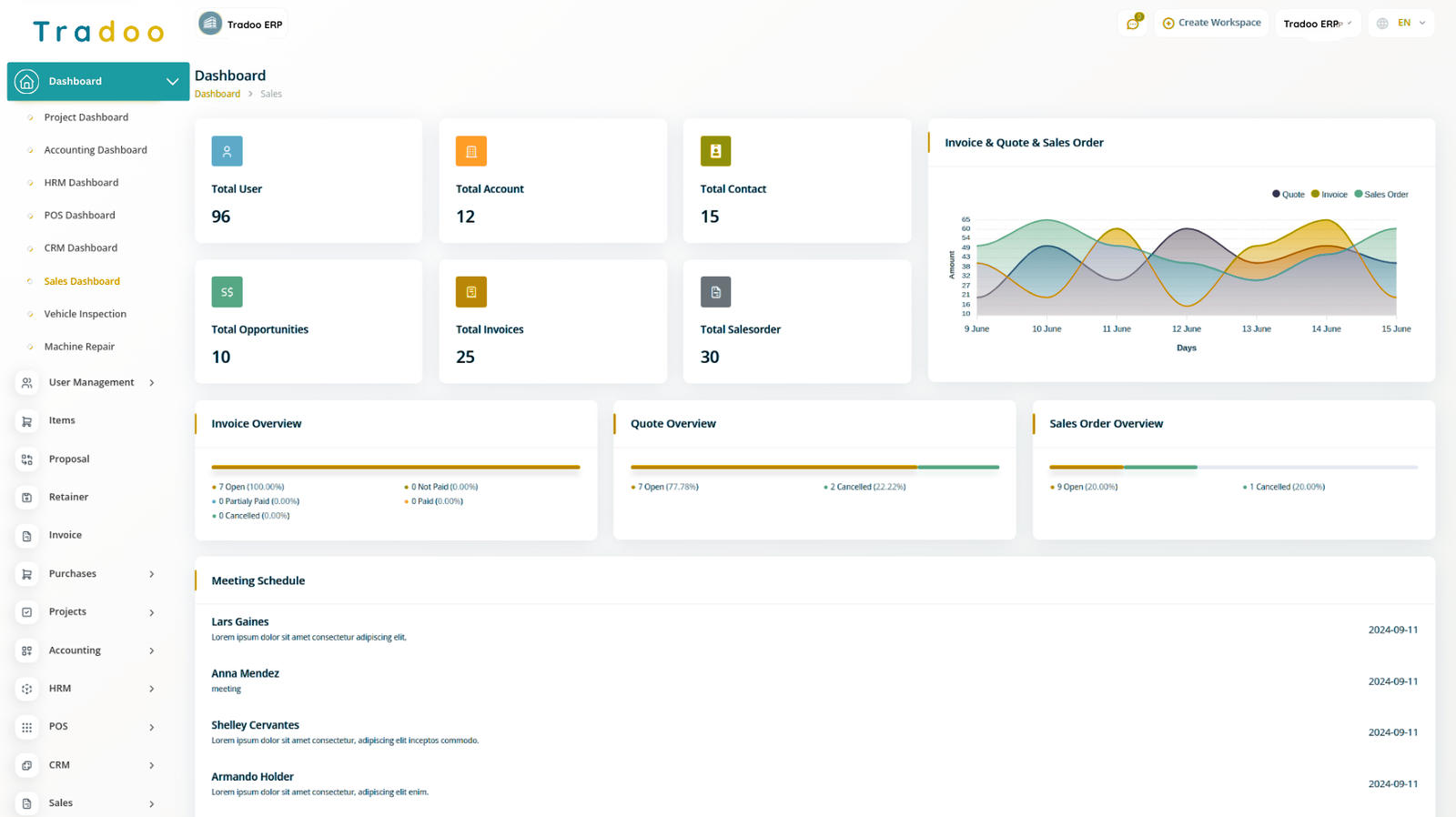 Manage all your business functions seamlessly from a single platform with Tradoo ERP.