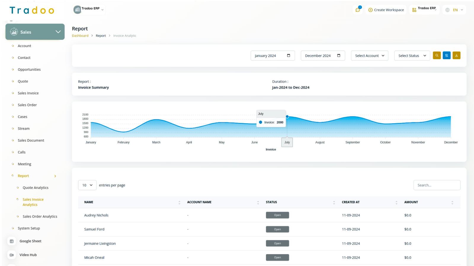 In the sales invoice, you can view the monthly report and in the sales invoice. You can also view the assigned accountant status-wise.
